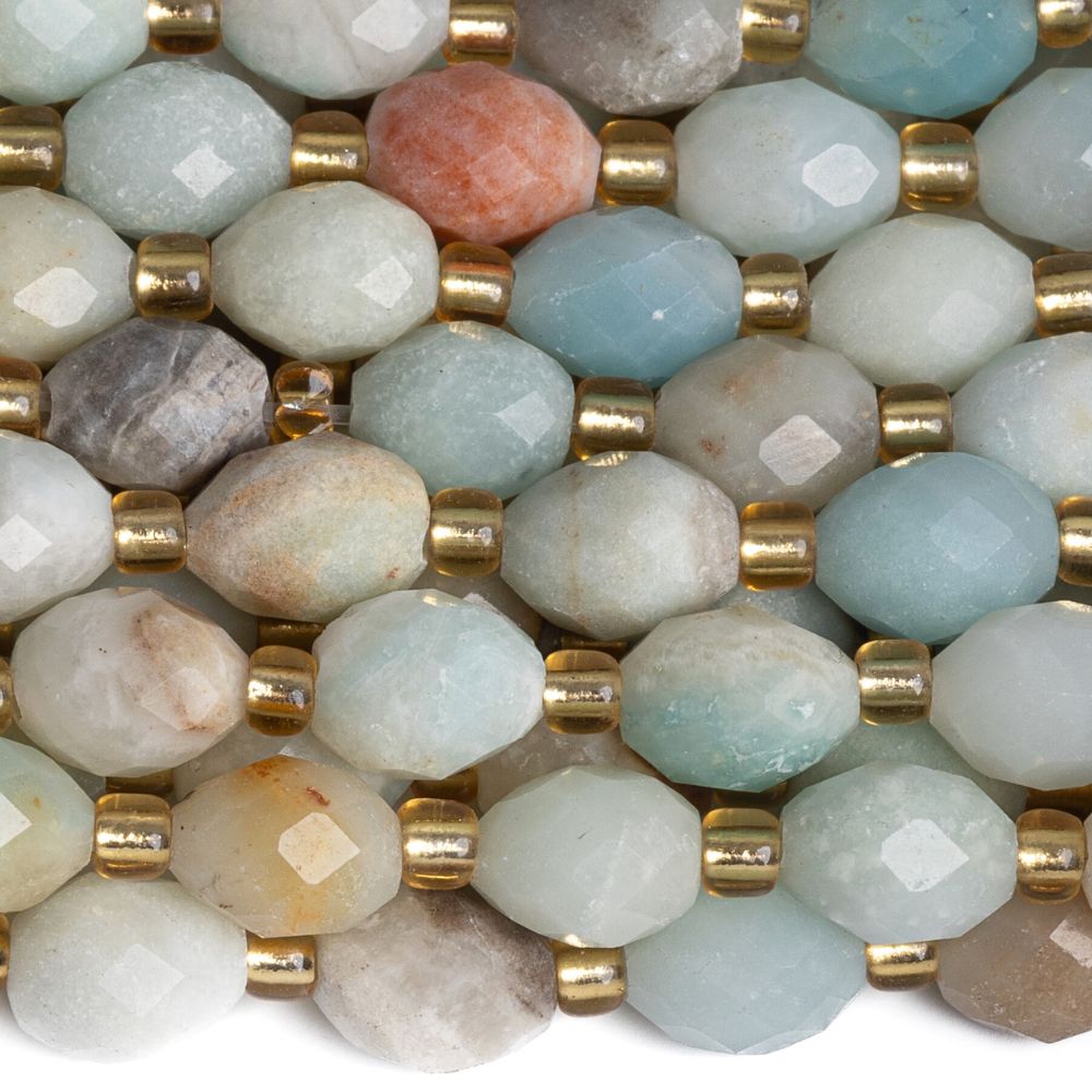 Amazonit oliva gyöngyök 6x8 mm félhosszú zsinór
