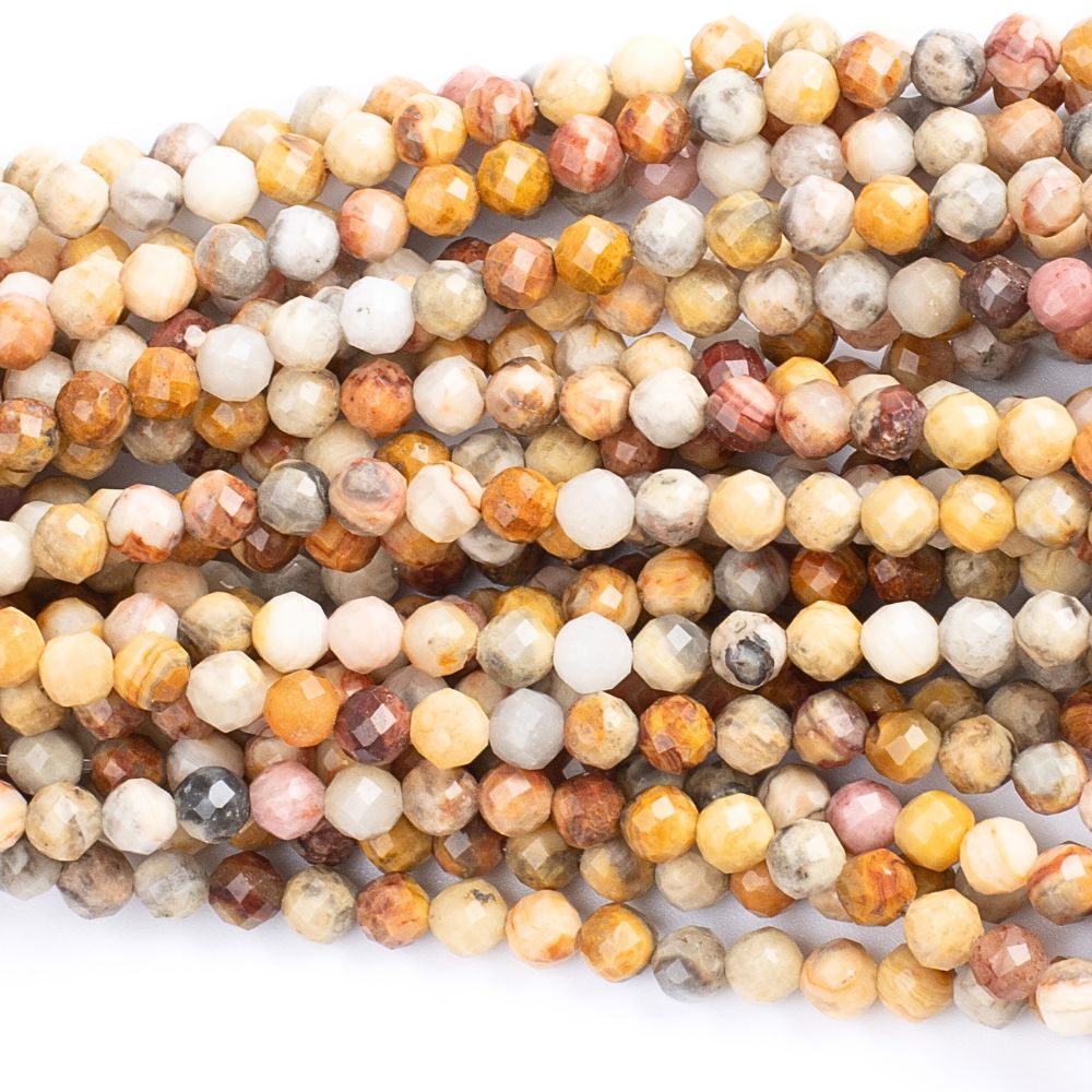 • Crazy lace achát gyöngyök 4 mm csiszolt félhosszú zsinór