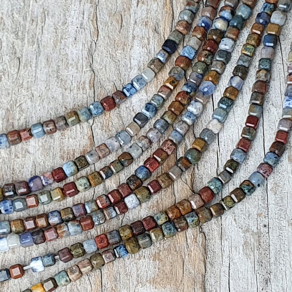 Dumortierit gyöngyök 2,5 mm csiszolt kockák félhoszú zsinór