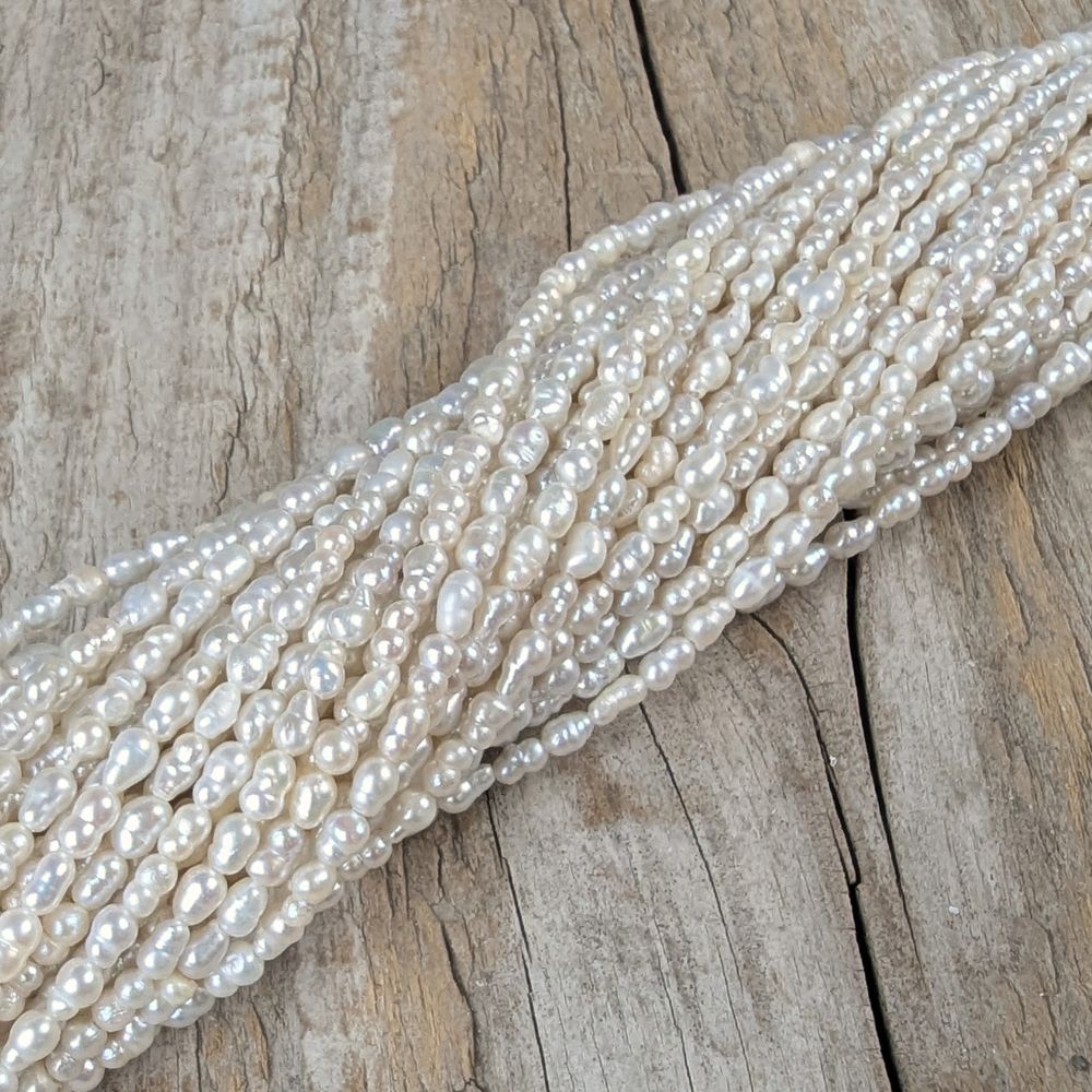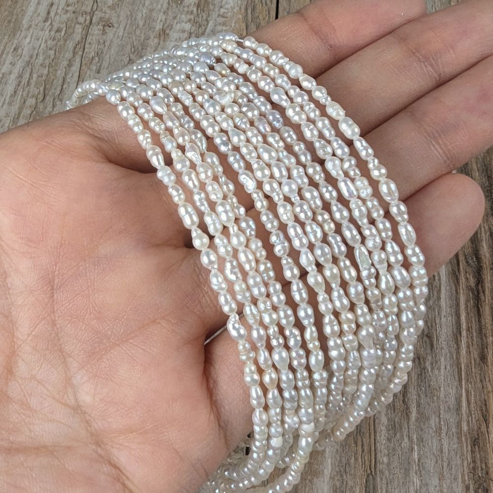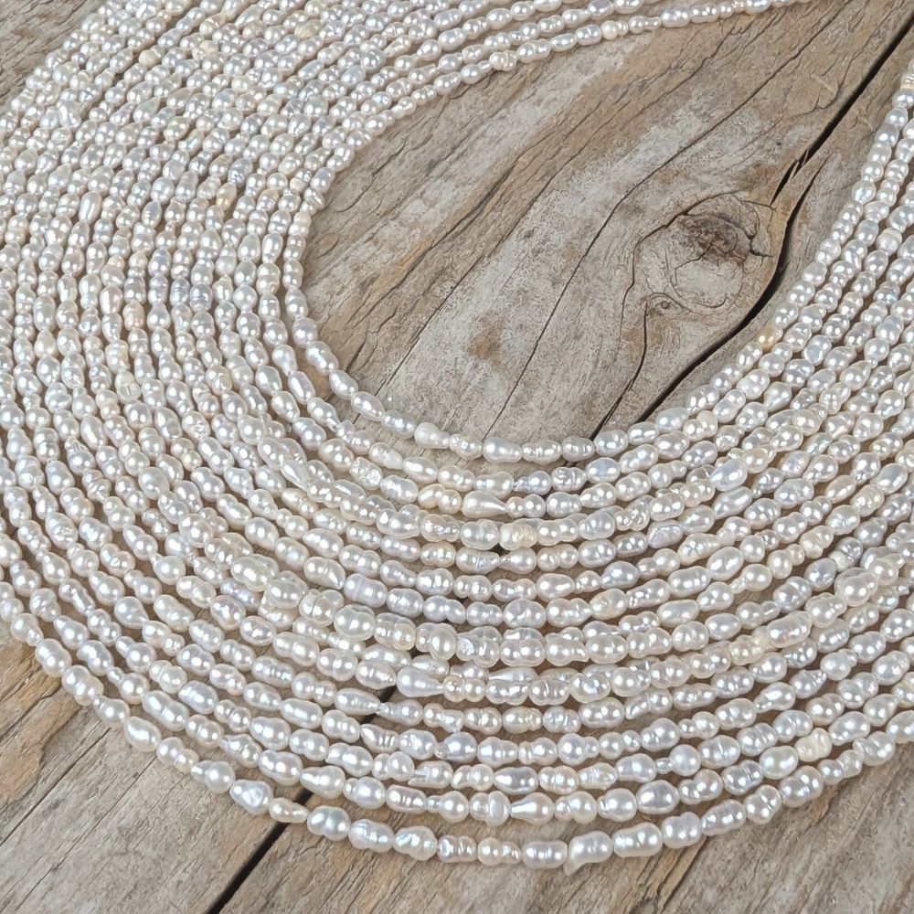 Édesvízi gyöngyök 2–3 mm hosszúkás szabálytalan zsinór