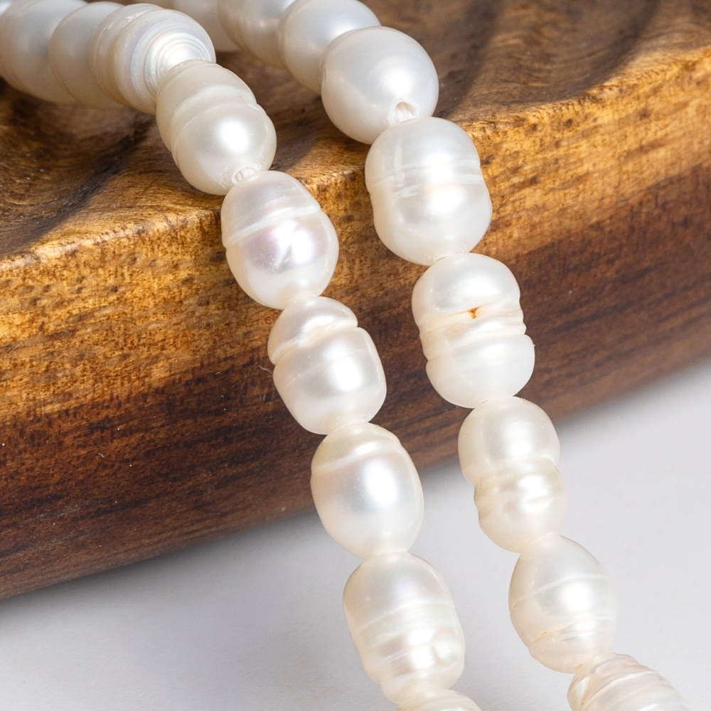 - Édesvízi gyöngyök 4-6 mm hosszúkás zsinór