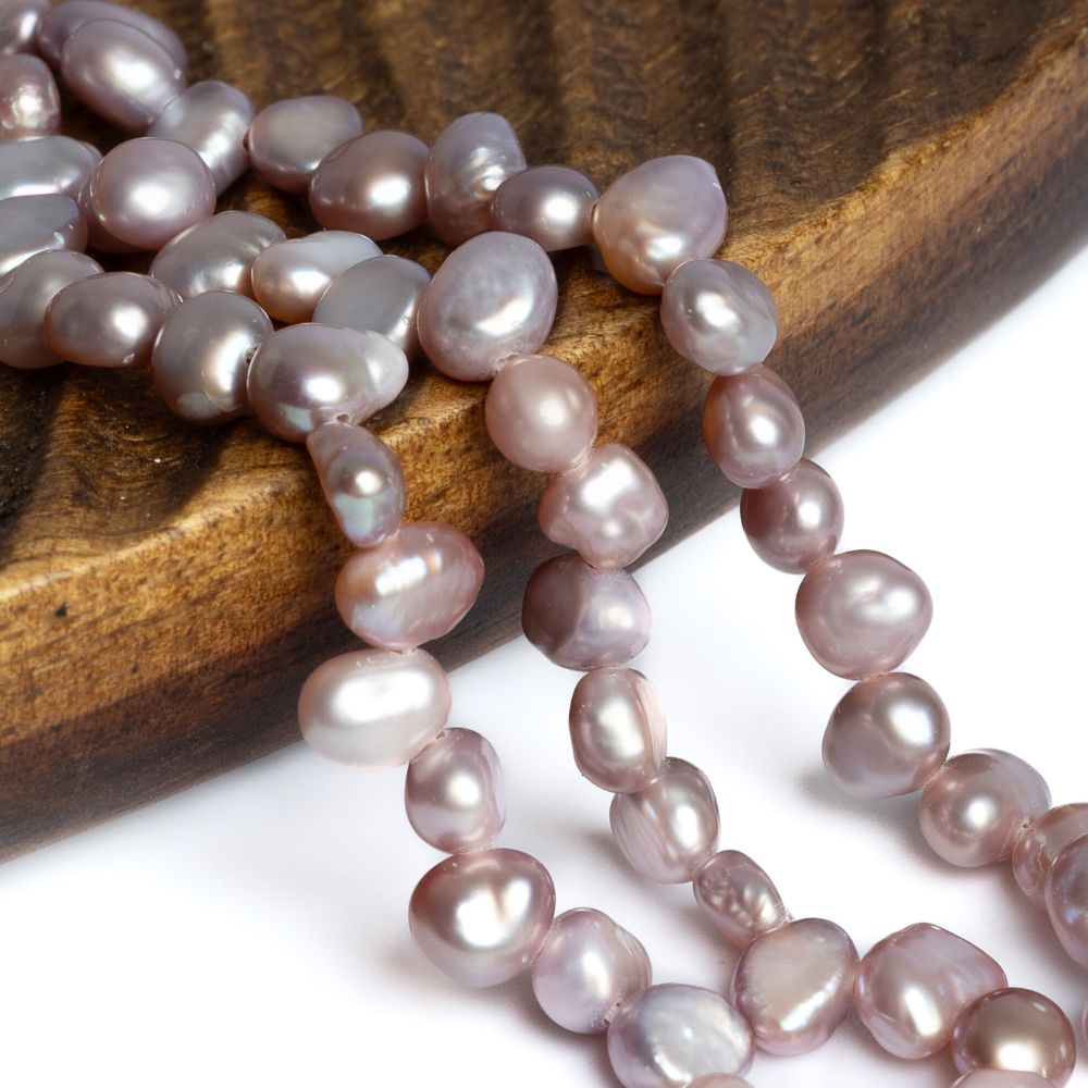 • Édesvízi gyöngyök 5-6 mm lila (természetes szín) szabálytalan könnycsepp zsinór