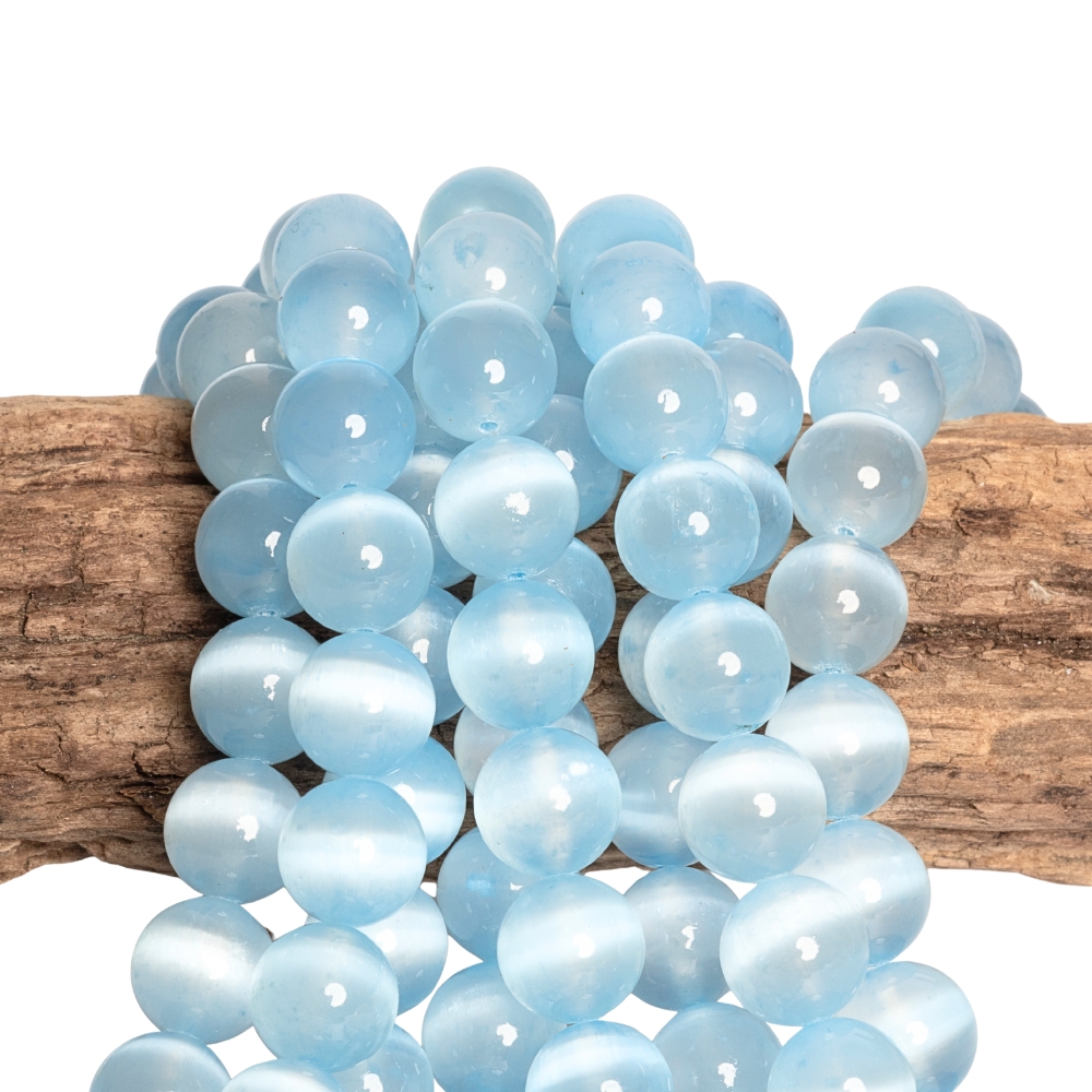 Égszínkék szelenit gyöngyök 10 mm félhosszú zsinór
