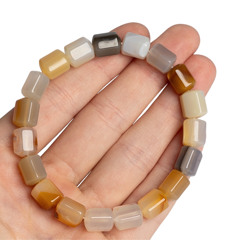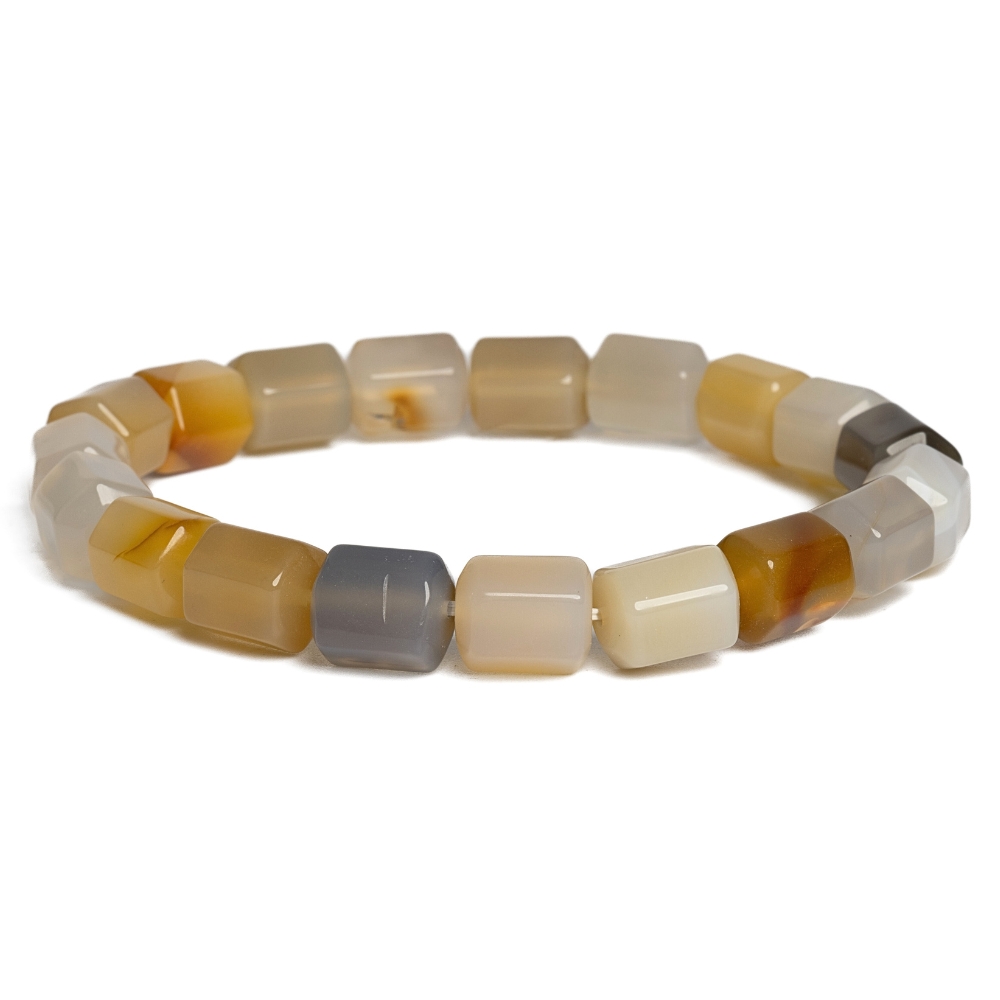 • Fehér-barna achát karkötő hexagonális hengerek
