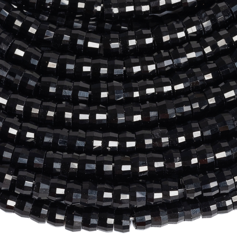 Fekete obszidián gyöngyök 4x2,5mm heishi csiszolt félhosszú zsinór