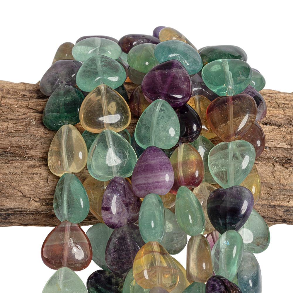 Fluorit gyöngyök 12 mm szívecske félhosszú zsinór