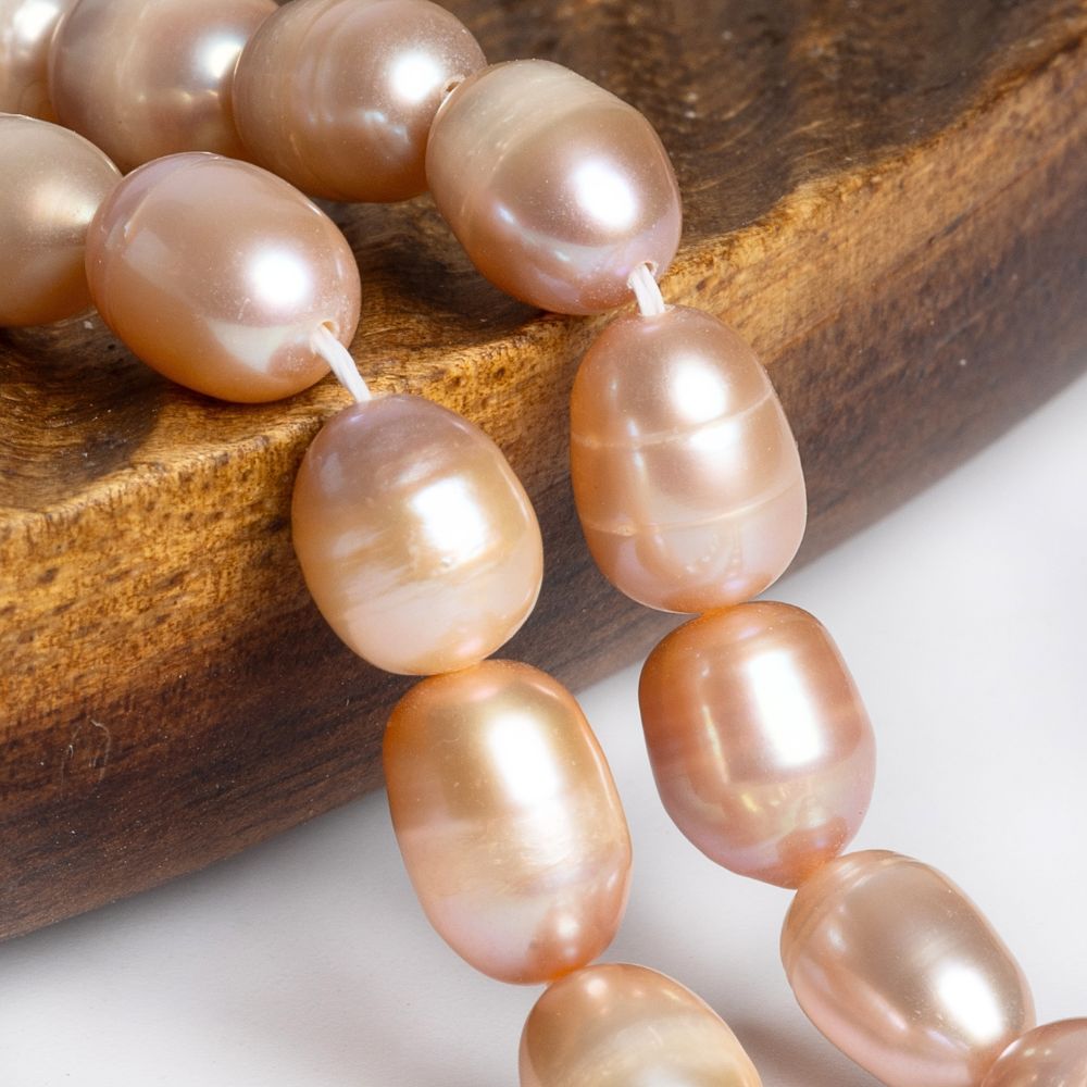 • Folyami gyöngy gyöngyszemek 7 mm pénzérme alakúak, rózsaszín-lazac színűek, szálon.