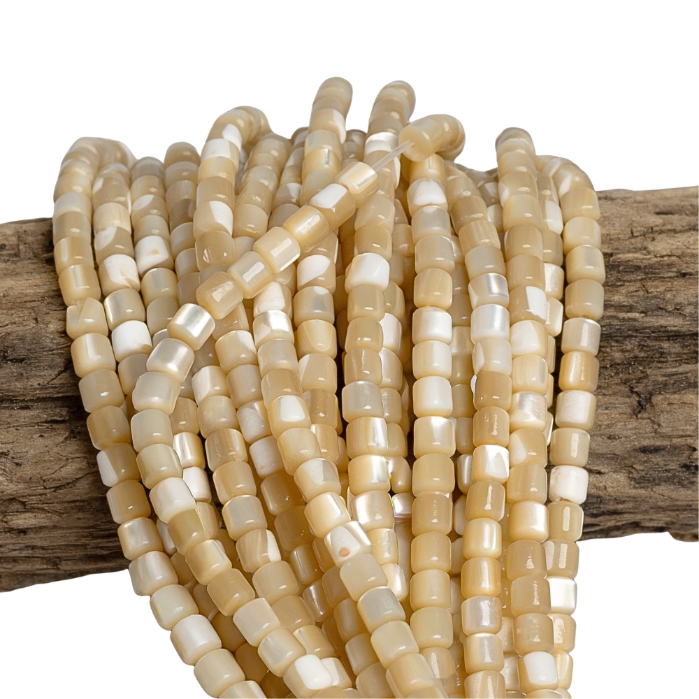 Gyöngyház bézs gyöngyök 4x4 mm hengerek zsinór