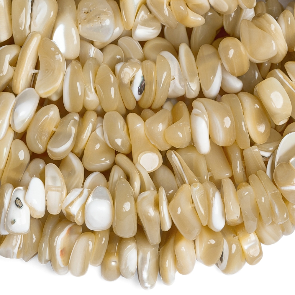 • Gyöngyház bézs gyöngyök ásványtörmelék zsinór