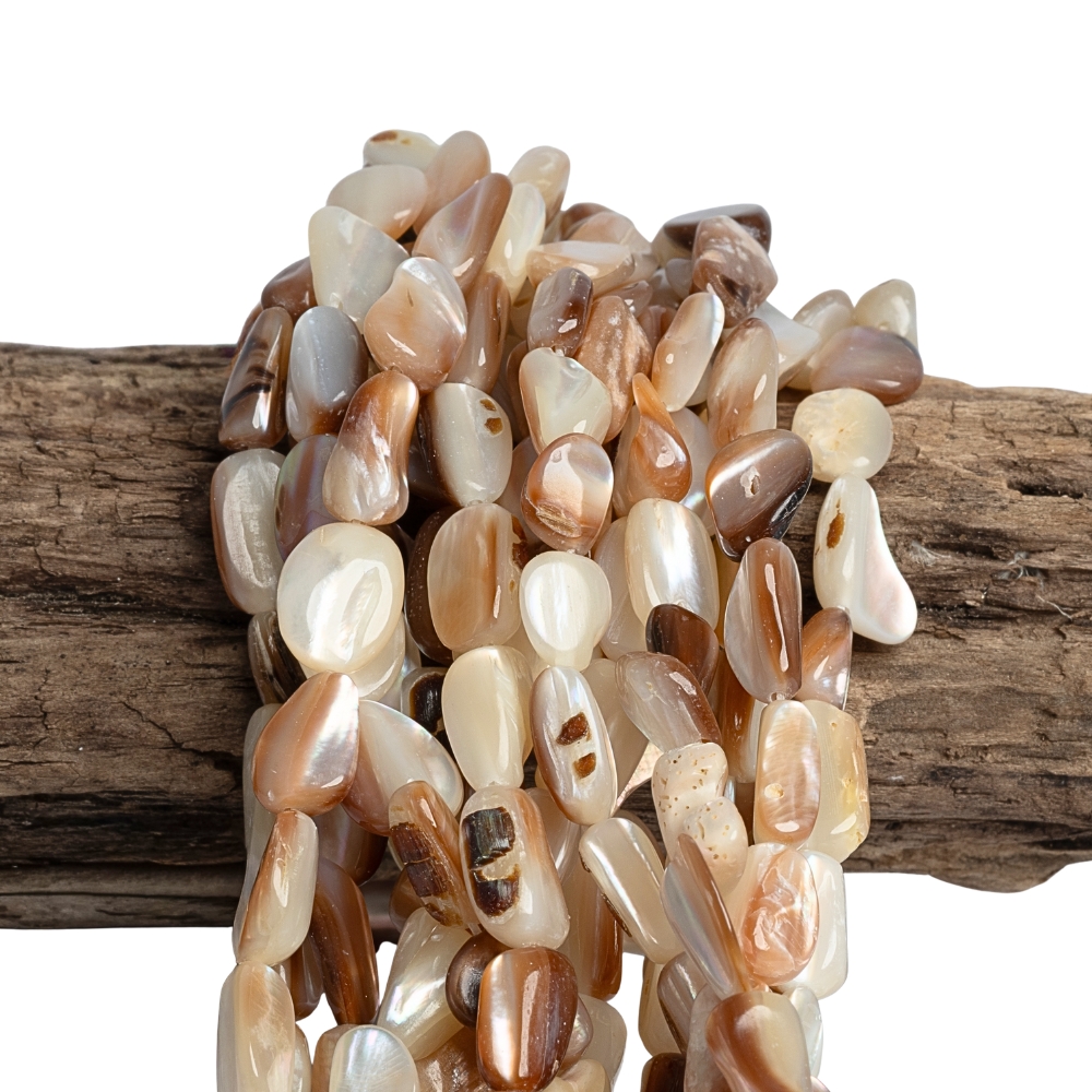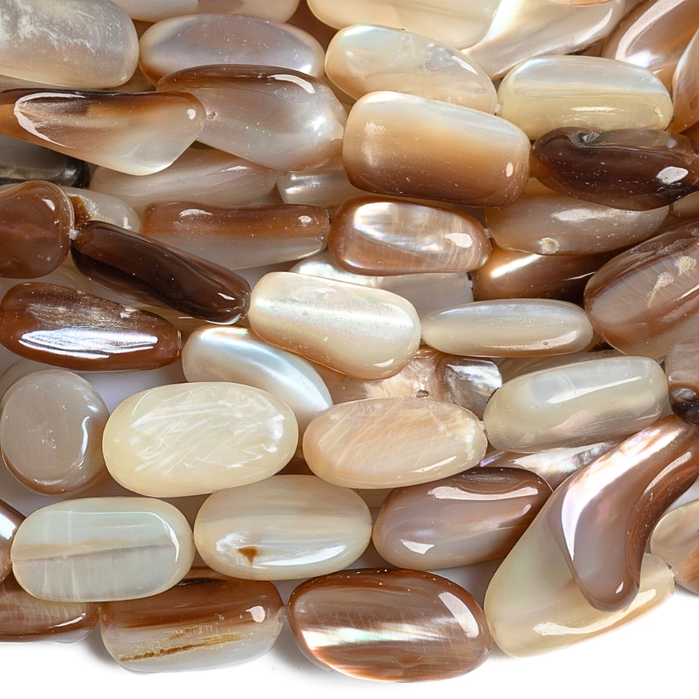 • Gyöngyház bézs gyöngyök hosszúkás nugát zsinór