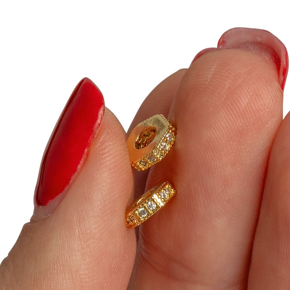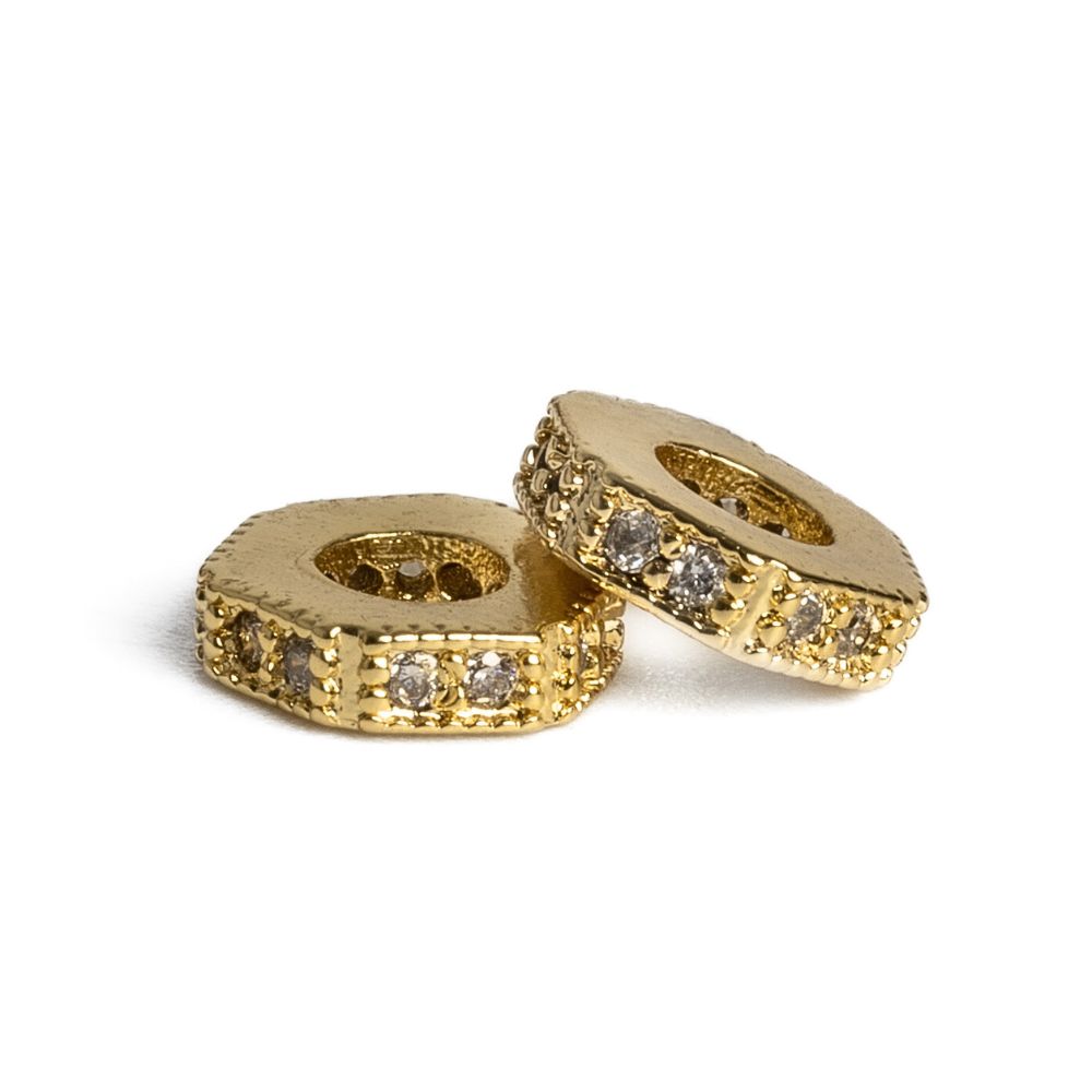 • Hatszög gyöngy arany fehér cirkóniákkal