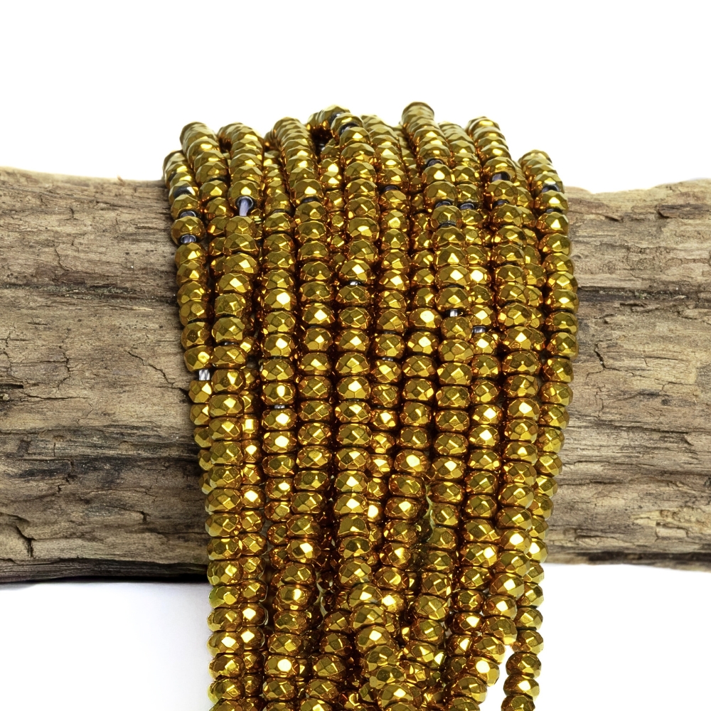 - Hematit gyöngyök 3x2 mm fánk arany csiszolt zsinór