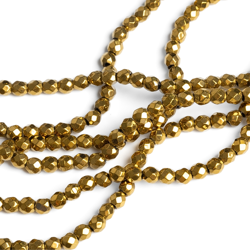 - Hematit gyöngyök 4 mm arany csiszolt zsinór
