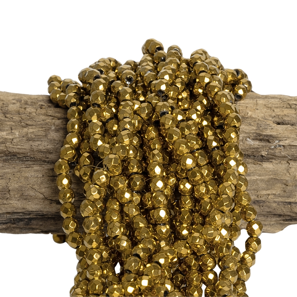 Hematit gyöngyök 4 mm arany csiszolt zsinór
