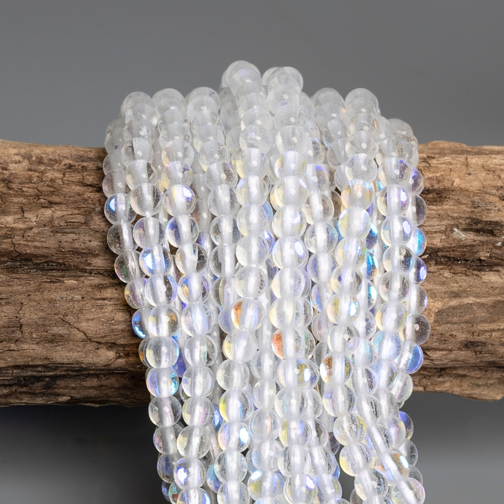 Holdkő szintetikus gyöngyök 4 mm hologram zsinór