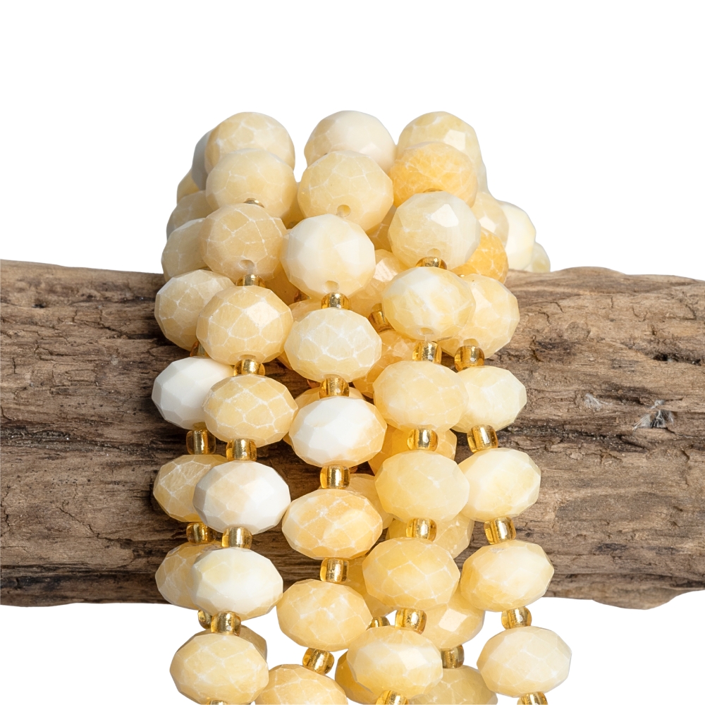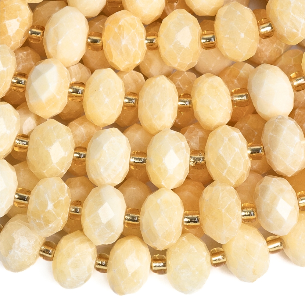 Jadeit világossárga gyöngyök 6 x 9 mm mm rondellák csiszolt félhoszú zsinór