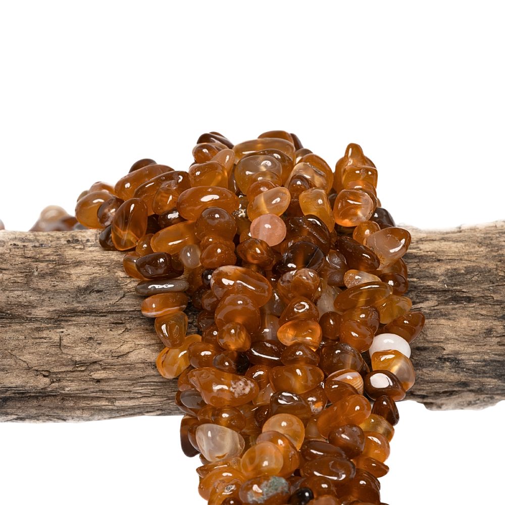 • Karneol gyöngyök ásványtörmelék zsinór