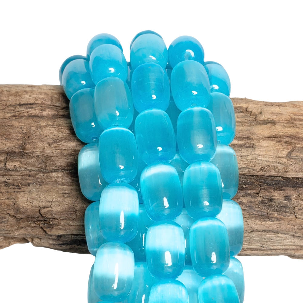 Kék szelenit gyöngyök 8×12 mm hengerek félhosszú zsinór