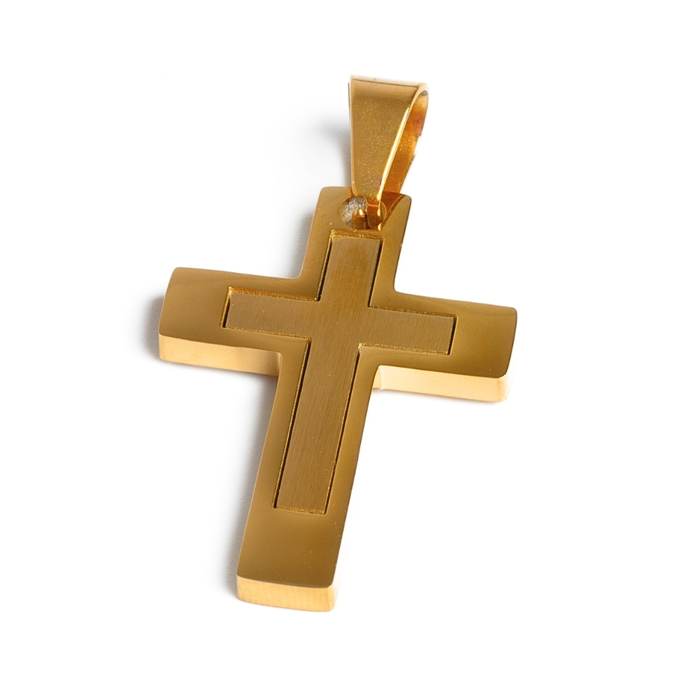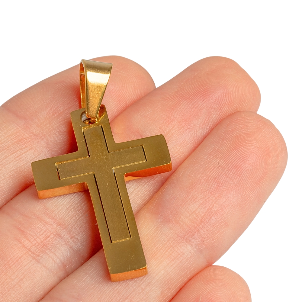 • Kereszt medál kapoccsal 30 mm arany nemesacél