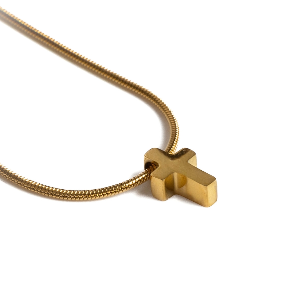 • Kereszt medál kapoccsal 8x5 mm arany nemesacél