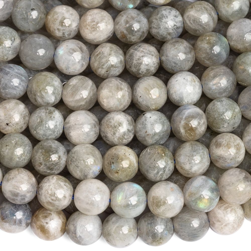 Labradorit gyöngyök 8 mm világos félhosszú zsinór