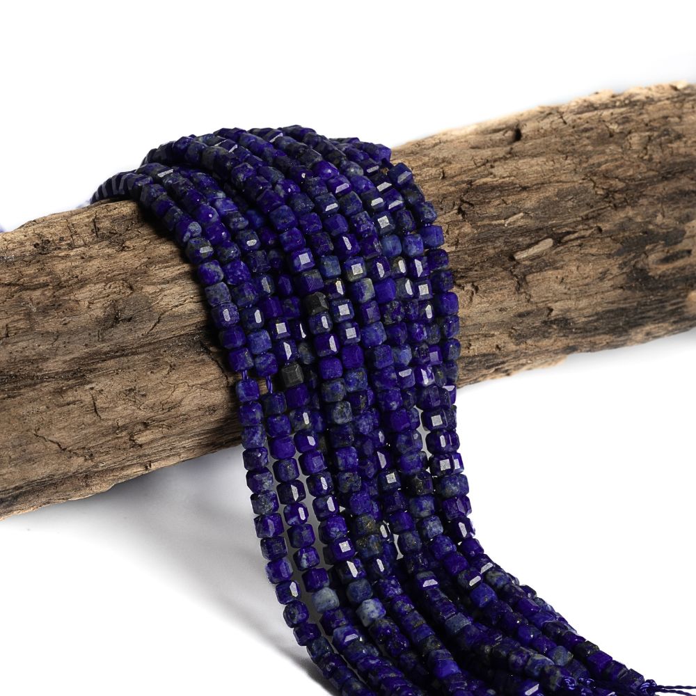 • Lápisz lazuli gyöngyök 3,5 mm kockák csiszolt félhosszú zsinór