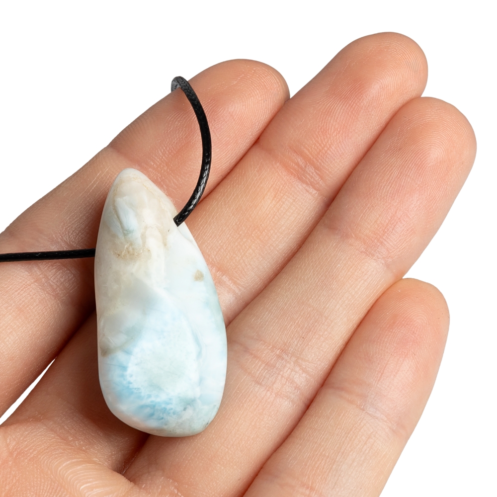 • Larimar medál rozsdamentes kupakkal viaszos zsinóron