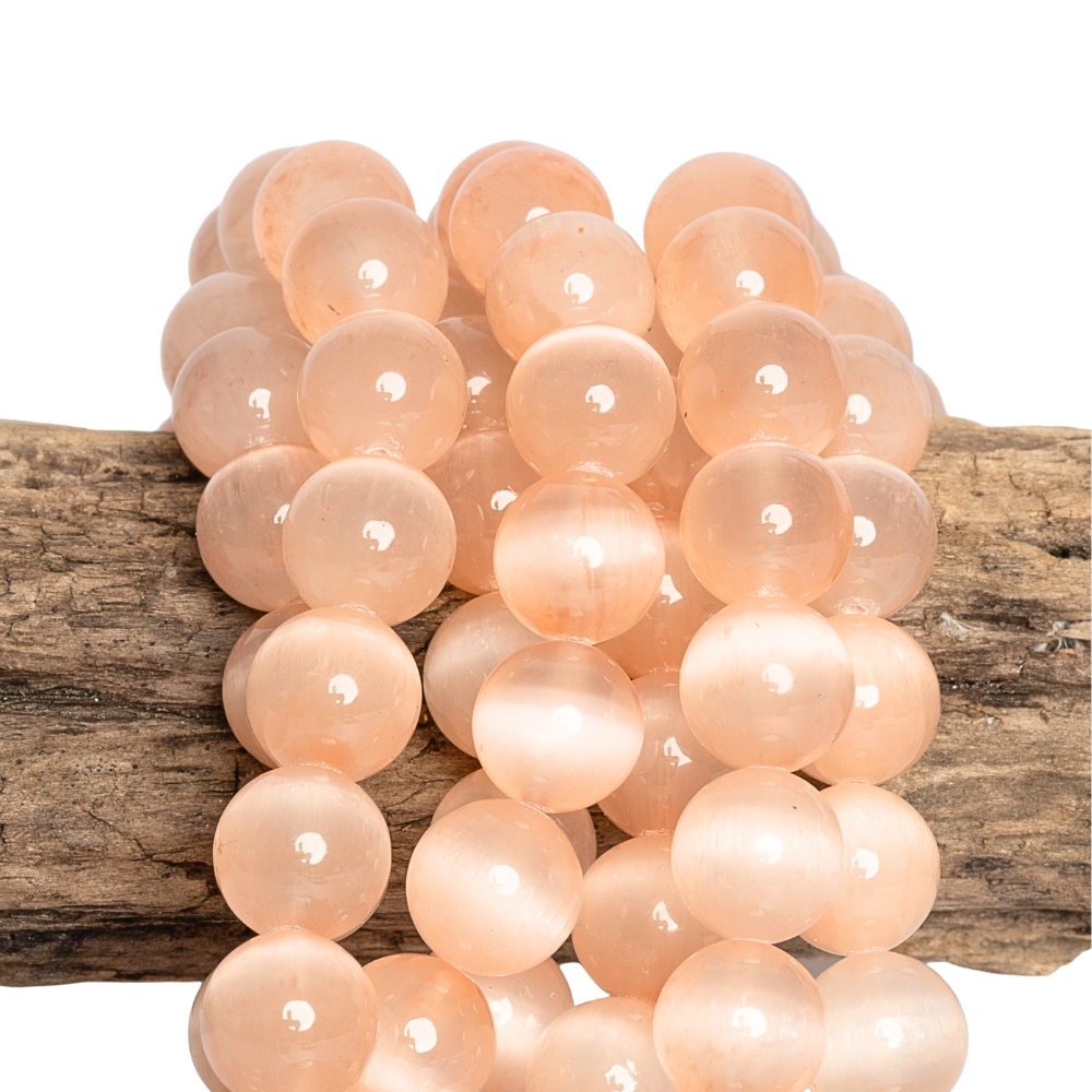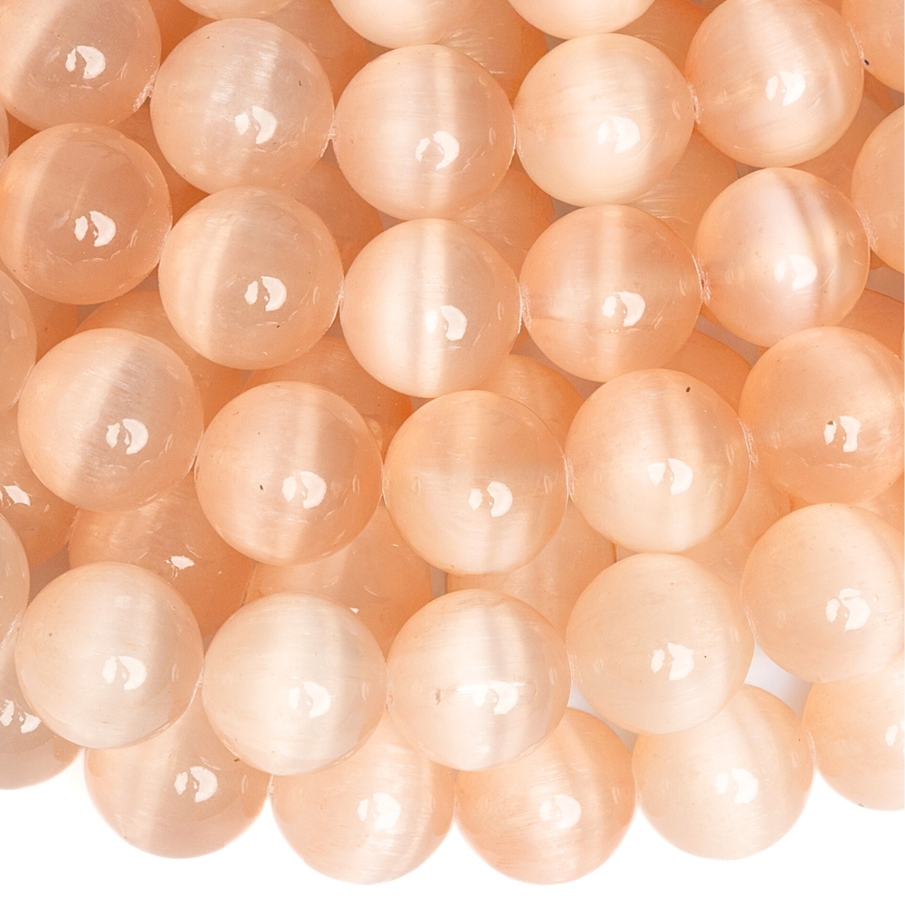 Lazacszínű szelenit gyöngyök 10 mm félhosszú zsinór