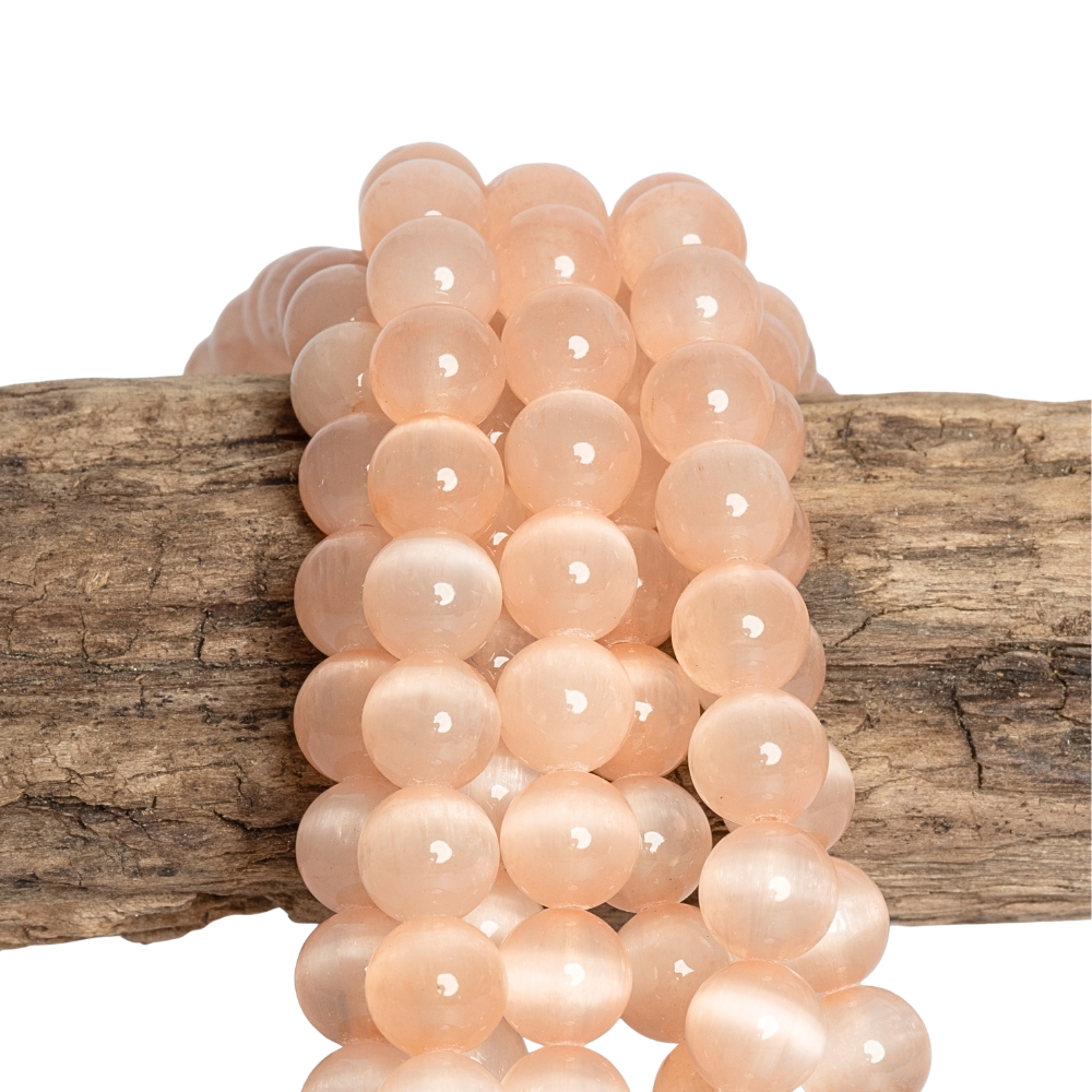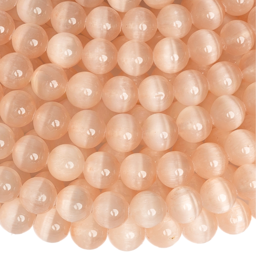 Lazacszínű szelenit gyöngyök 8 mm félhosszú zsinór