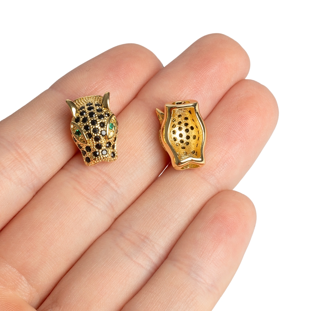 • Leopárdfej gyöngy arany fekete cirkonnal