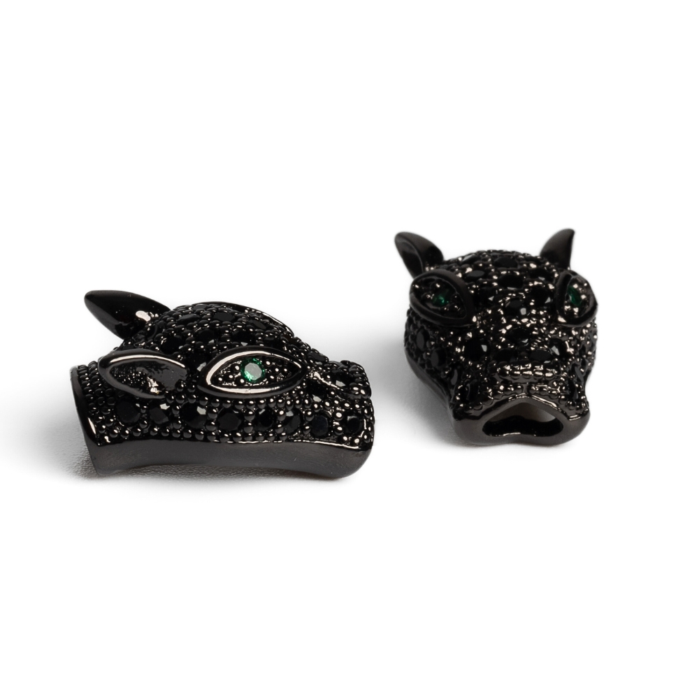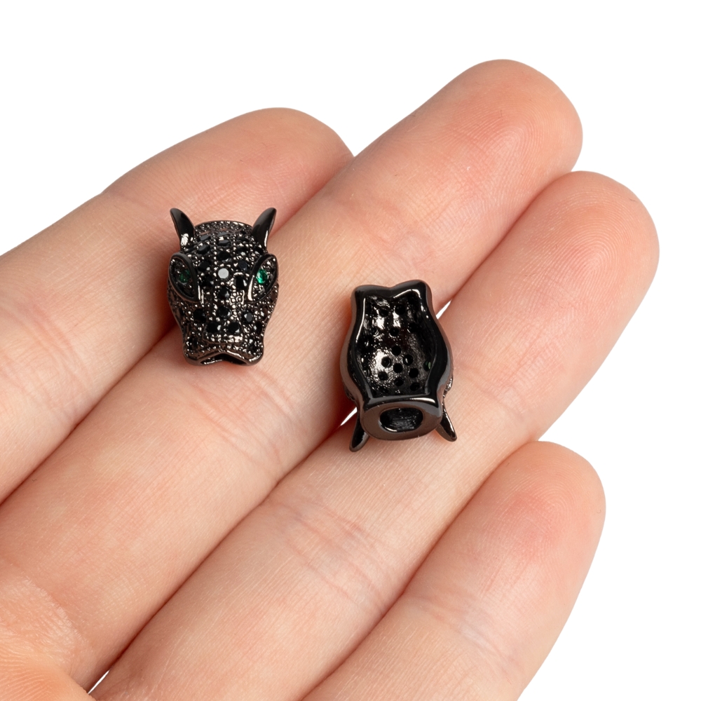 • Leopárdfej gyöngy fekete fekete cirkonnal