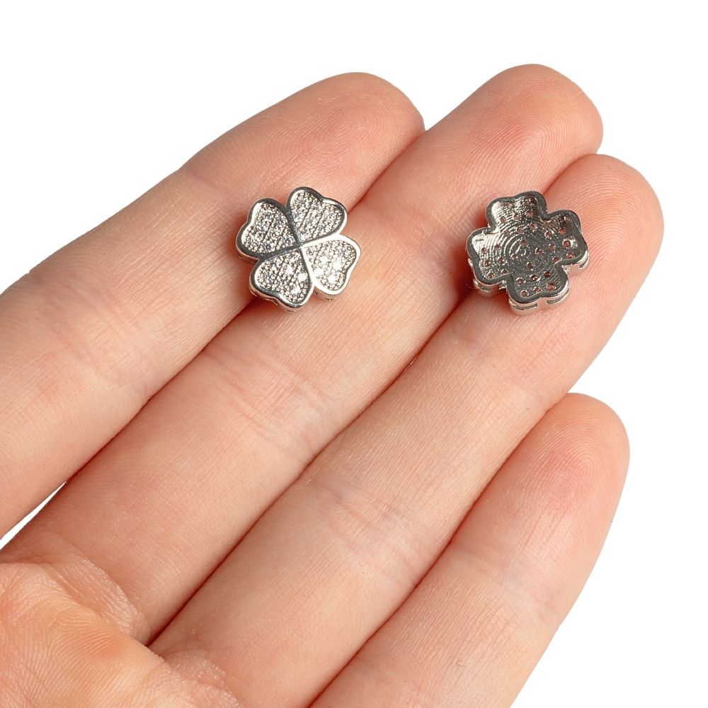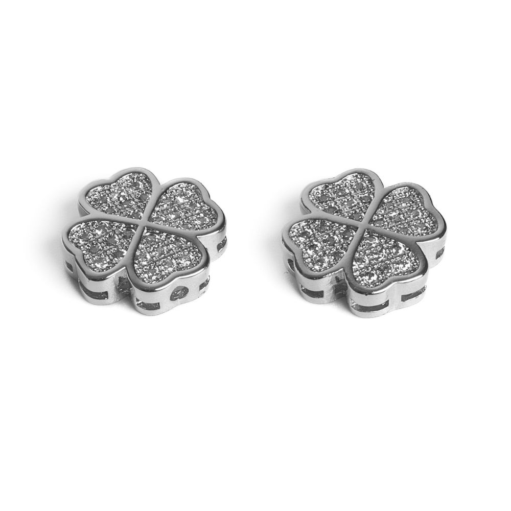 • Négylevelű lóhere gyöngy lapos ezüst fehér cirkonnal