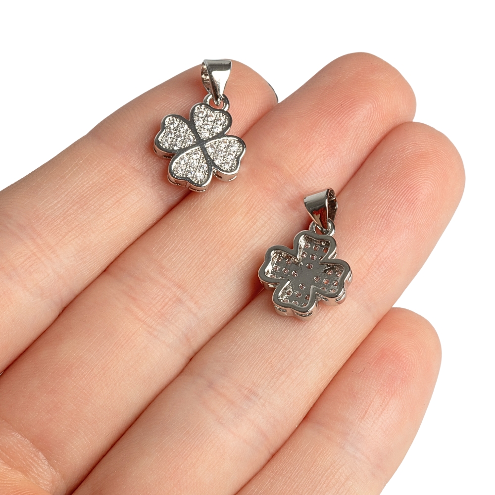 • Négylevelű lóhere medál medáltartóval ezüst fehér cirkonnal