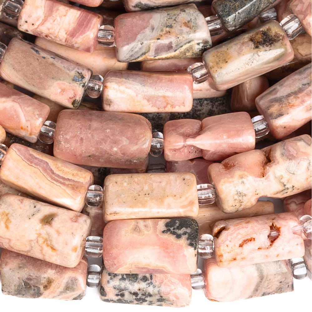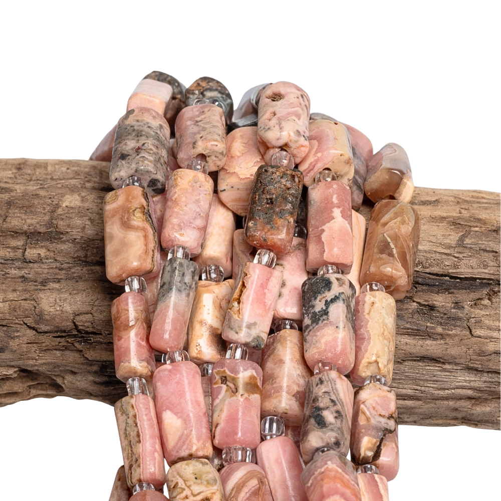 Rodokrozit gyöngyök hengerek fényes félhosszú zsinór