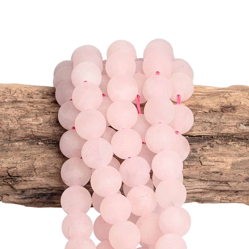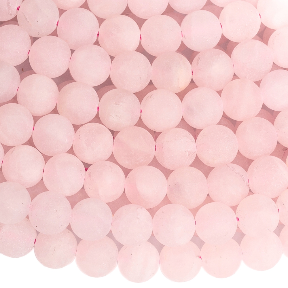 - Rózsakvarc gyöngyök 8,5 mm matt inklúziókkal zsinór