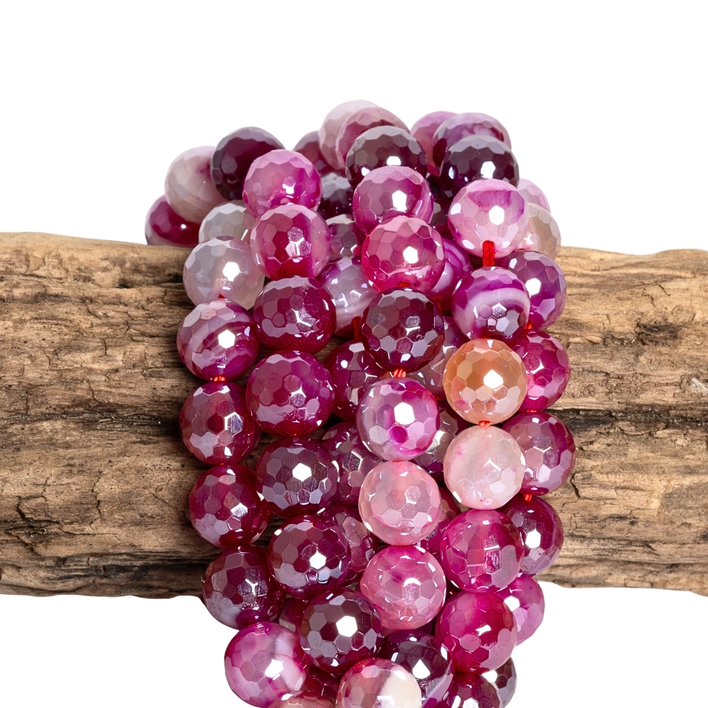 - Szalagos achát gyöngyök 8 mm csiszolt fukszia bevonattal zsinór