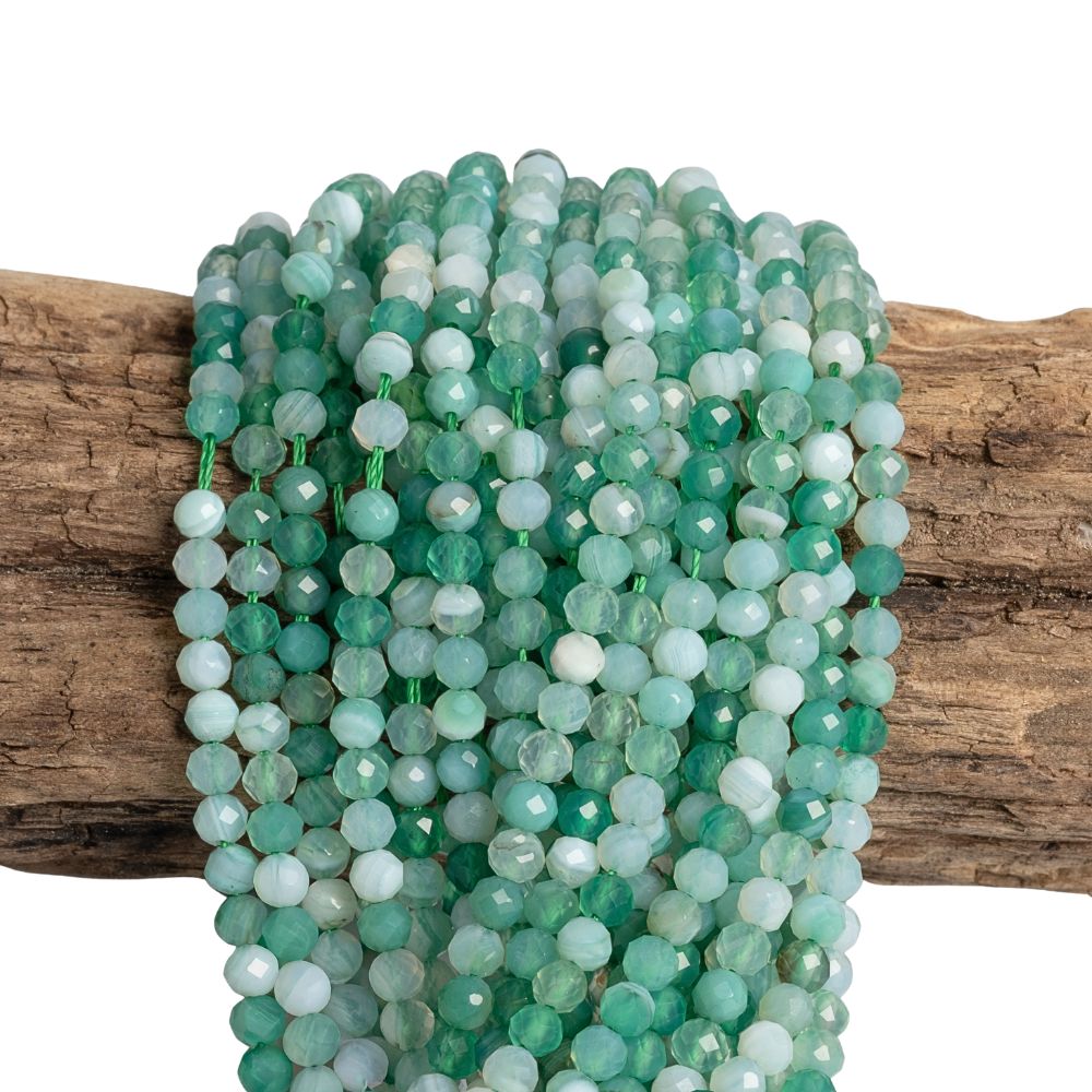 • Szalagos achát zöld gyöngyök 3 mm csiszolt zsinór