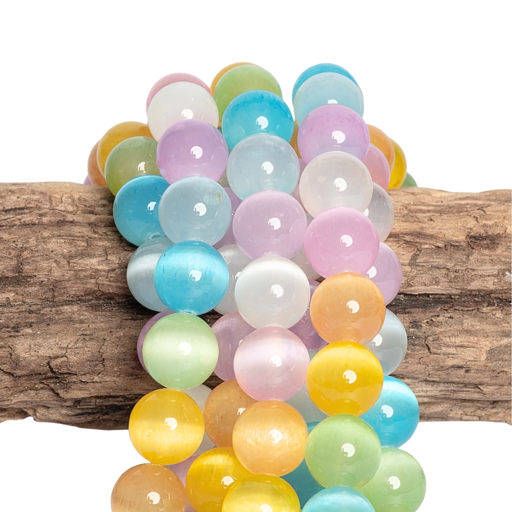 Színkeverék szelenit gyöngyök 10 mm félhosszú zsinór