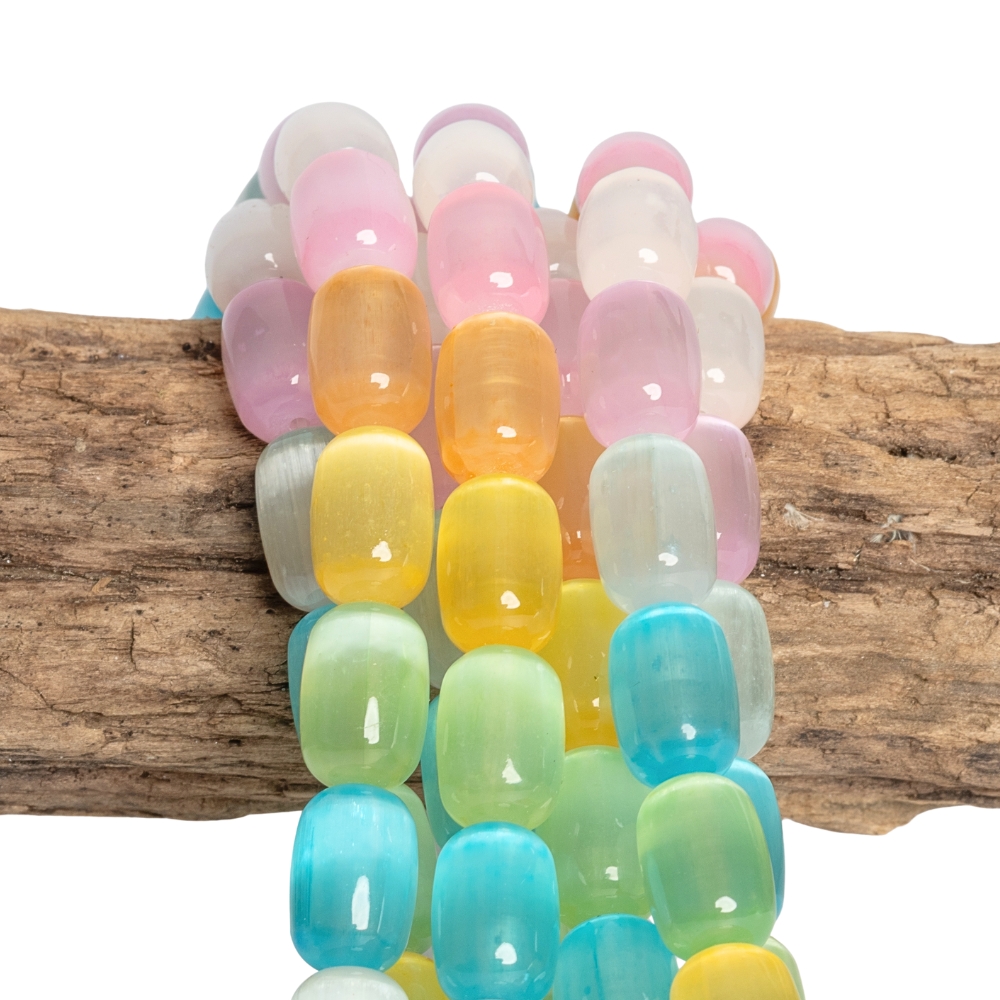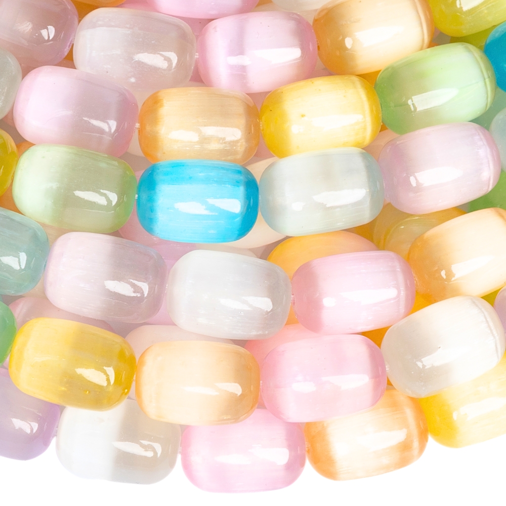 Színkeverék szelenit gyöngyök 8×12 mm hengerek félhosszú zsinór