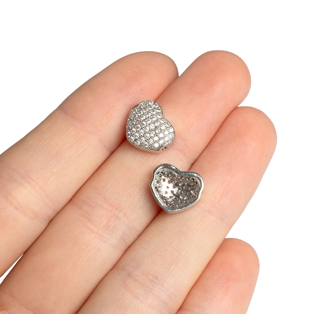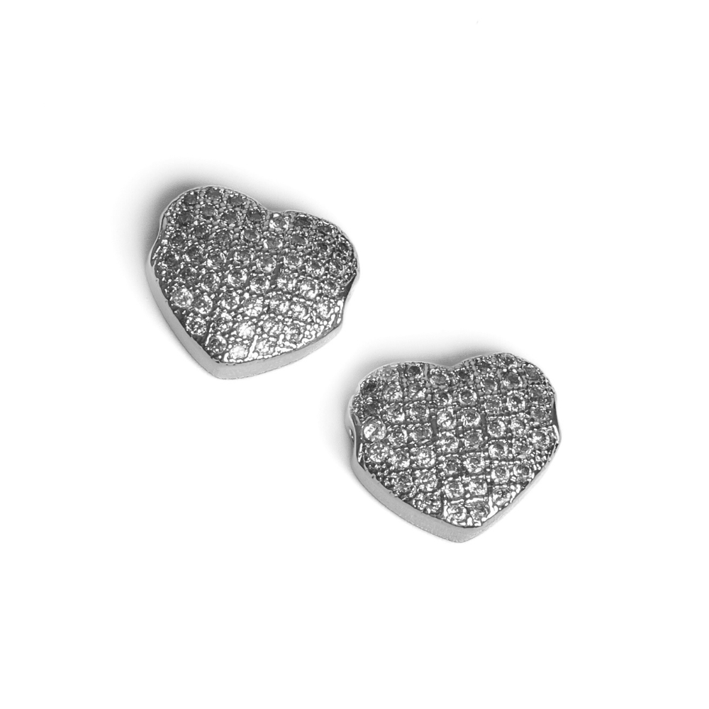 • Szív gyöngy lapos ezüst fehér cirkonnal