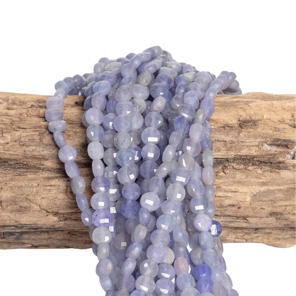 Tanzanit gyöngyök 4 mm pénzérme félhosszú zsinór