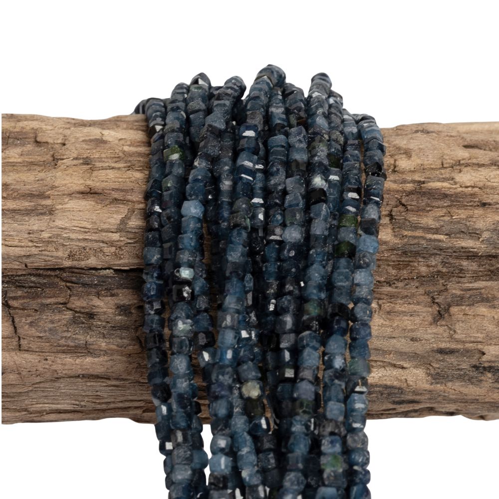 - Turmalin kék gyöngyök 2,5 mm kockák csiszolt félhosszú zsinór