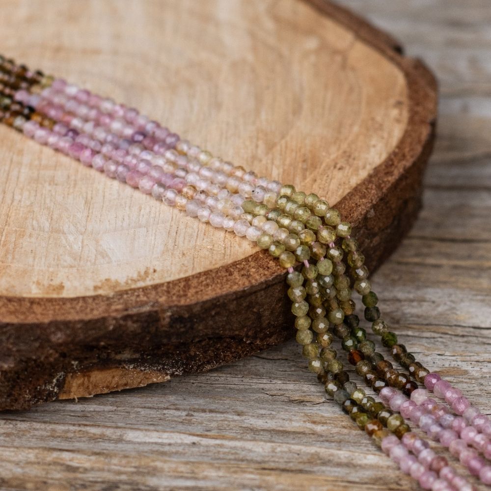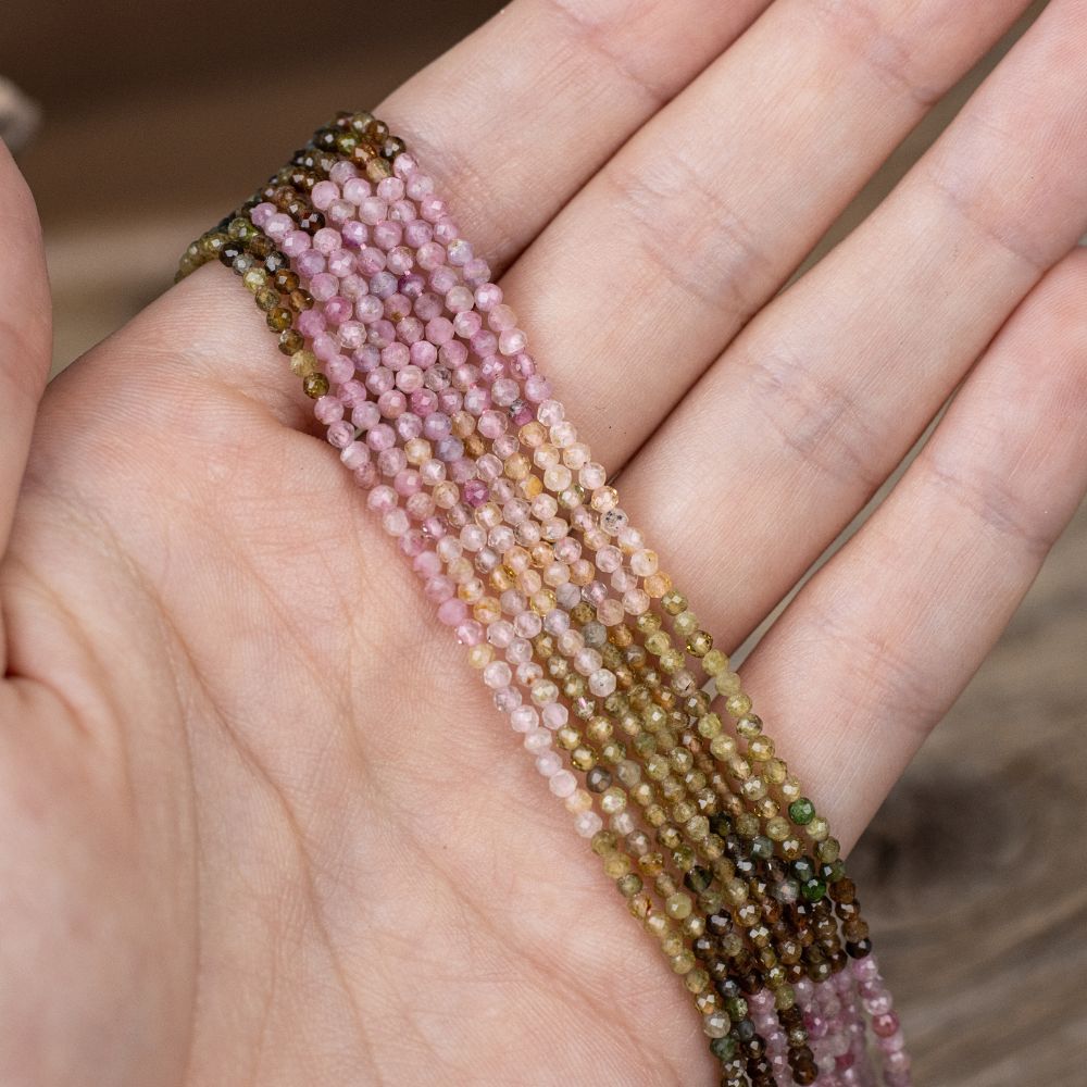 Turmalin kevert színek gyöngyök 2 mm csiszolt zsinór