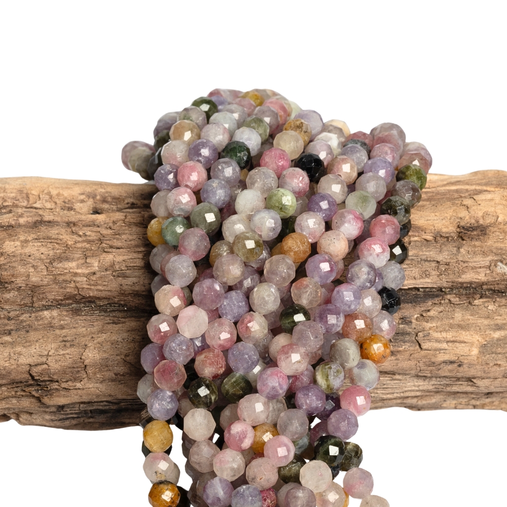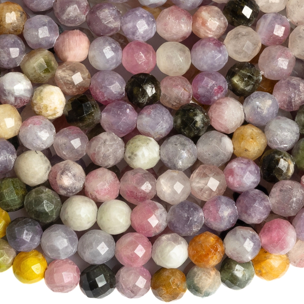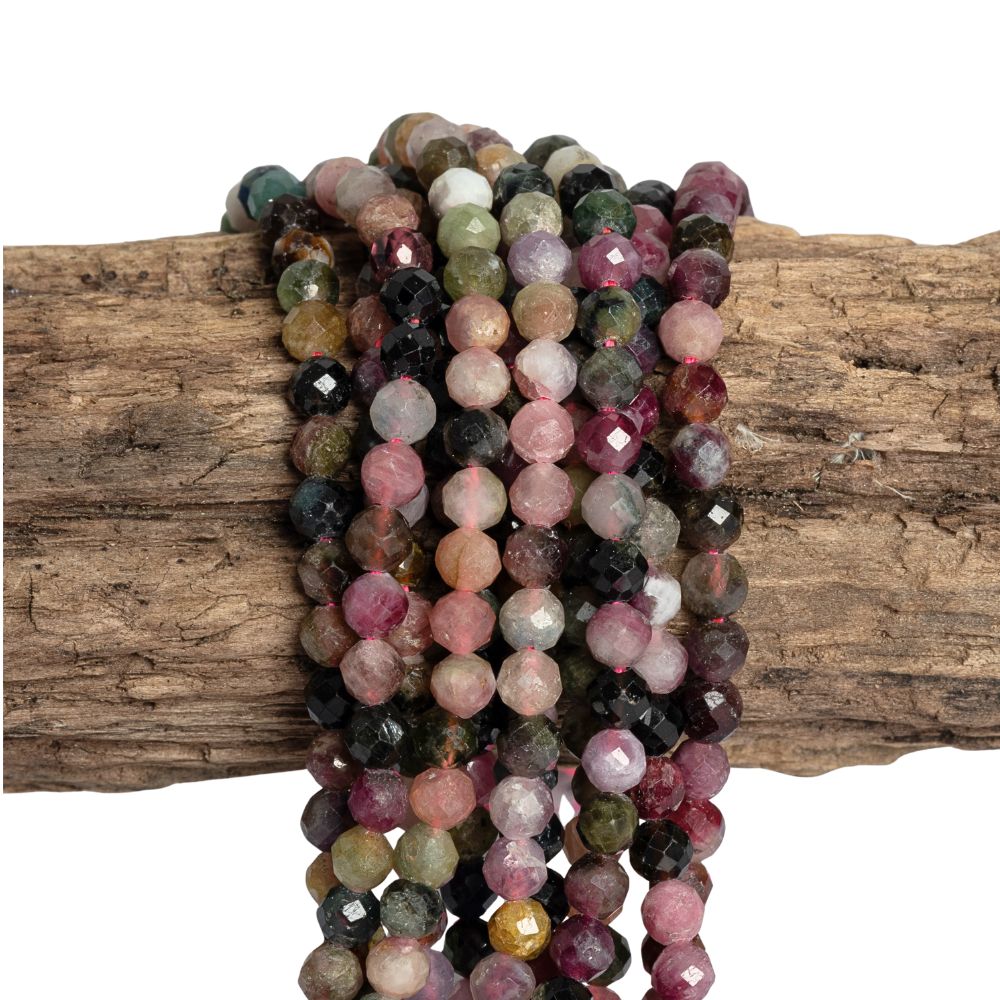 Turmalin kevert színek gyöngyök 4 mm csiszolt félhosszú zsinór
