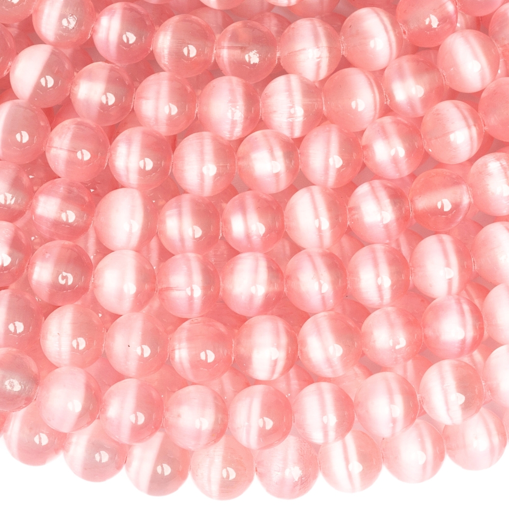 • Világos rózsaszín szelenit gyöngyök 6 mm félhosszú zsinór