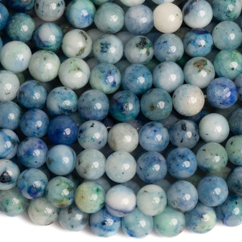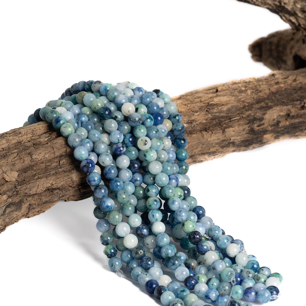 • Világoskék krizokoll gyöngyök 6 mm félhoszú zsinór