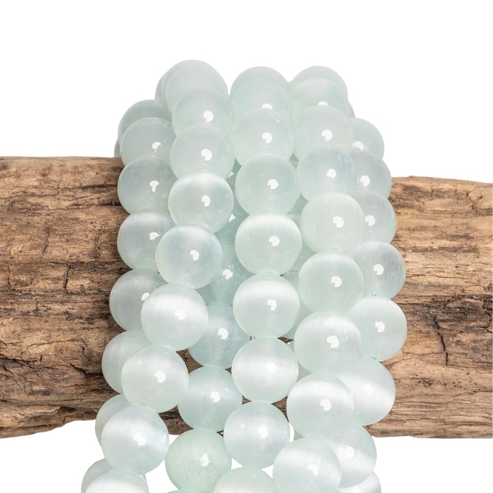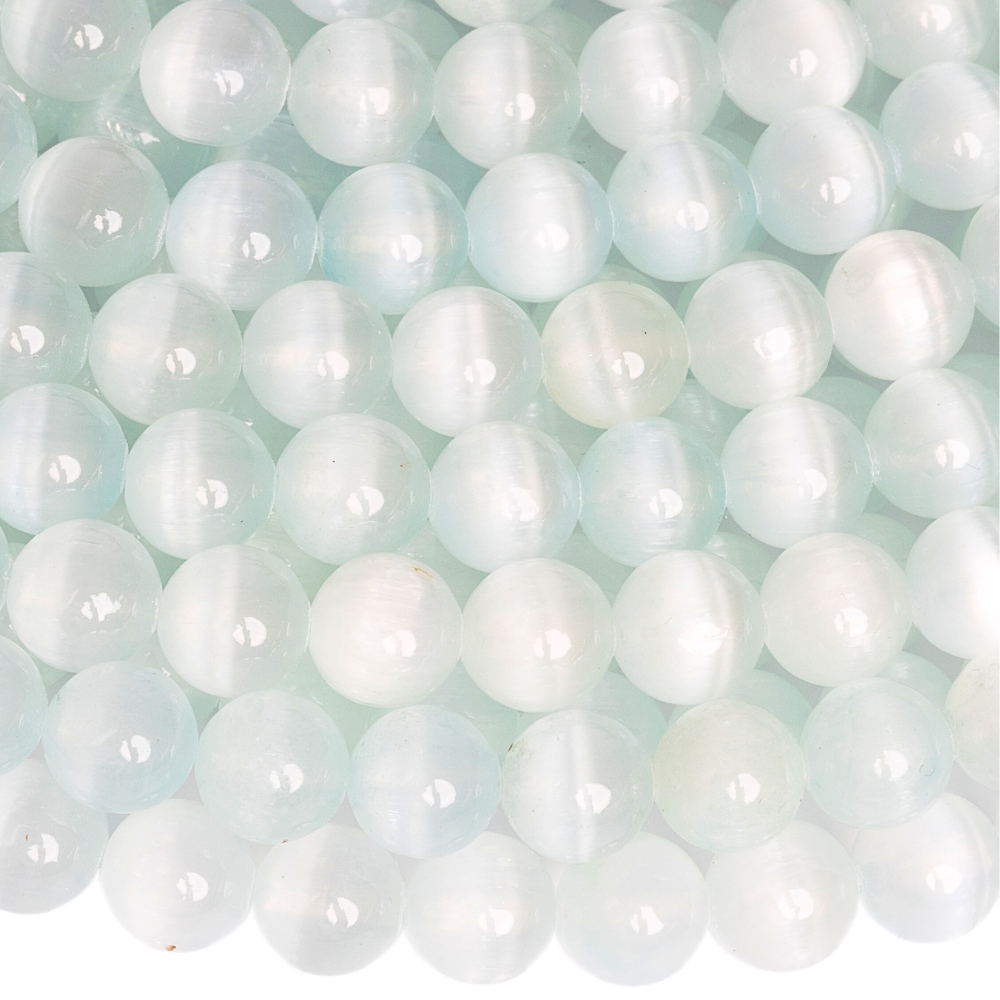 • Világoskék szelenit gyöngyök 8 mm félhosszú zsinór