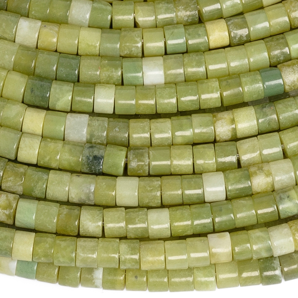 Zöld jadeit gyöngyök 2×3 mm rondellák félhosszú zsinór